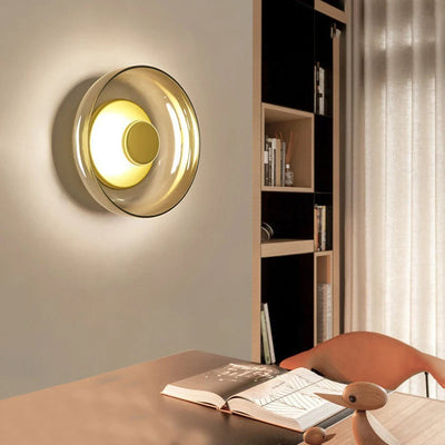 Productspecificaties • Afmetingen: D23 cm x 10 cm • Materiaal: Messing en glas • Producttype: Wandlamp • Lichtbron: Geïntegreerde led • Toepassing: Alleen voor binnengebruik