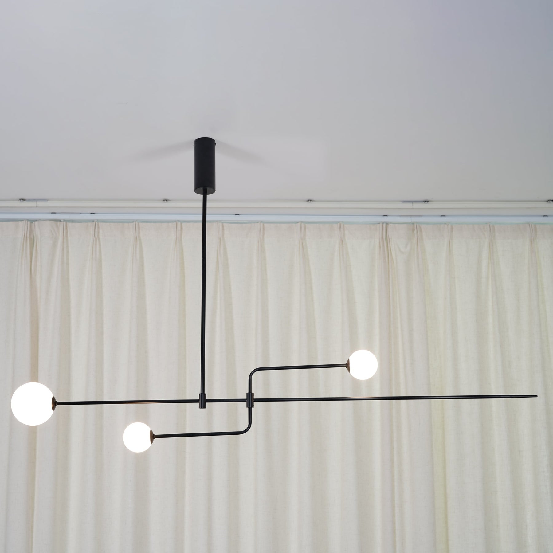 • Materiaal: metaal, staal, glas • Kleur armatuur: zwart of goudkleurig • Kleur kap: opaalwit • Lichtbron: ledlamp of edisonlamp • Fittingstype: G4 en G9 (afhankelijk van uitvoering) • Voltage: AC 110–240V • Afmetingen: diverse lengtes en hoogtes, afhankelijk van model • Ophanging: stangen van 15 cm, 25 cm en 50 cm (verlengbaar) • Montagewijze: plafondmontage (bij schuine plafonds op aanvraag) • Extra plafondplaat: inbegrepen (12 cm) • Vochtbestendigheid: IP20 (alleen voor binnengebruik) • Bediening: compatibel met standaard wandschakelaars • Bekabeling: vaste aansluiting