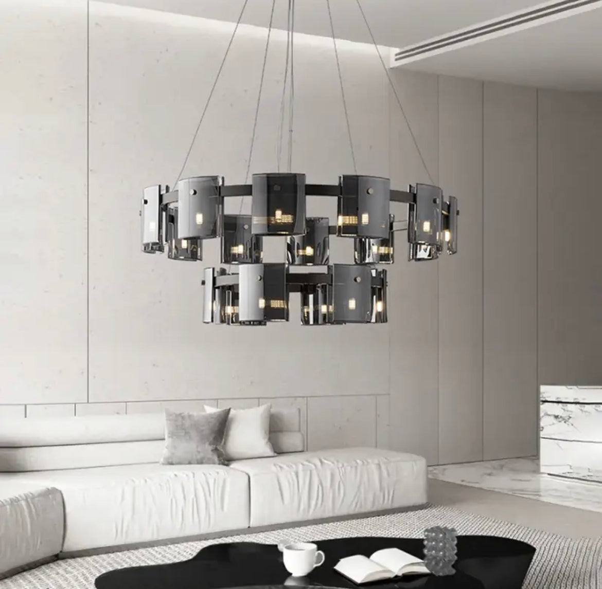 Een verfijnde kroonluchter die rust en stijl in elke ruimte brengt. Het ontwerp van glassteen verspreidt een gelijkmatig, warm licht en creëert een harmonieuze sfeer. Dankzij de verstelbare ophanghoogte past hij moeiteloos in verschillende kamers. Ideaal voor boven een eettafel, in de woonkamer of hal.