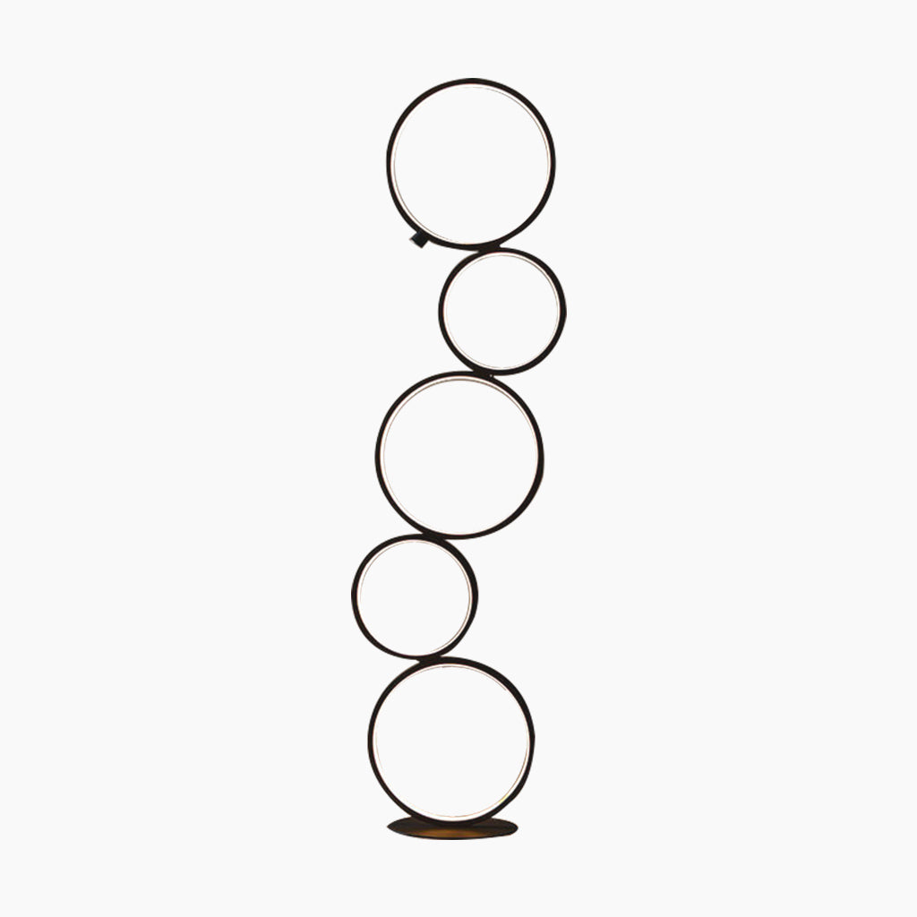 Breng een warme en rustige sfeer in uw interieur met deze sierlijke vloerlamp. De verbonden ringen geven een harmonieuze uitstraling en verspreiden zacht licht voor een aangename ambiance. Ideaal voor op een vensterbank, plank of dressoir.