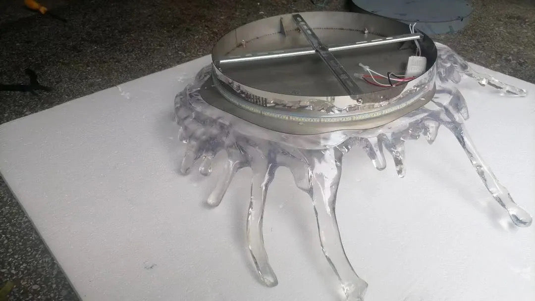 Een speelse en verfijnde lamp die licht en elegantie samenbrengt. Het unieke ontwerp in de vorm van een waterplons geeft een levendig en decoratief accent aan de ruimte. Het warme licht creëert een zachte gloed die een rustgevende en sfeervolle omgeving tot stand brengt. Ideaal voor op een wand in de woonkamer, badkamer of hal.